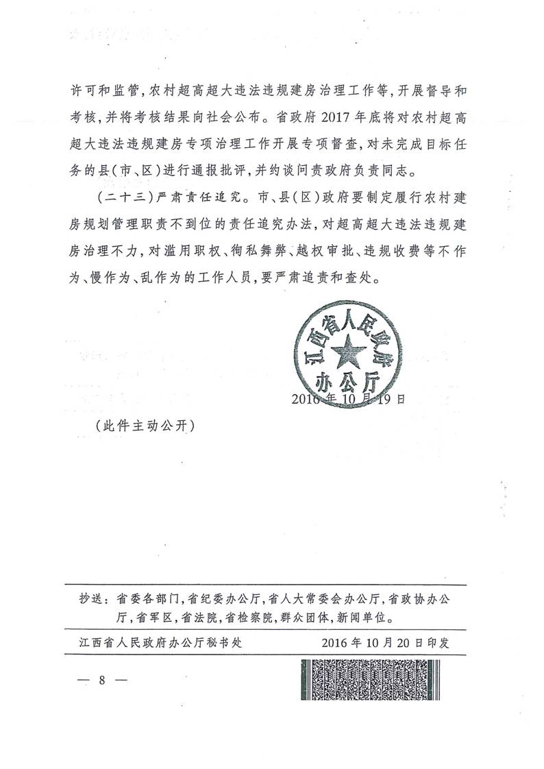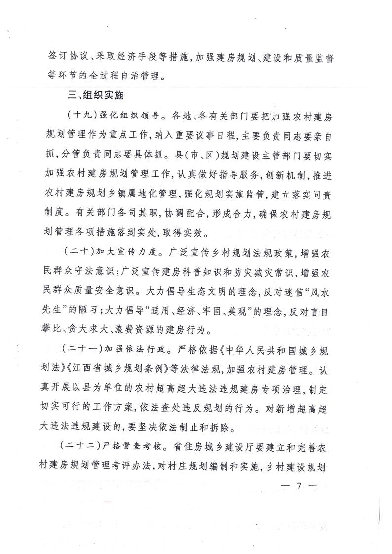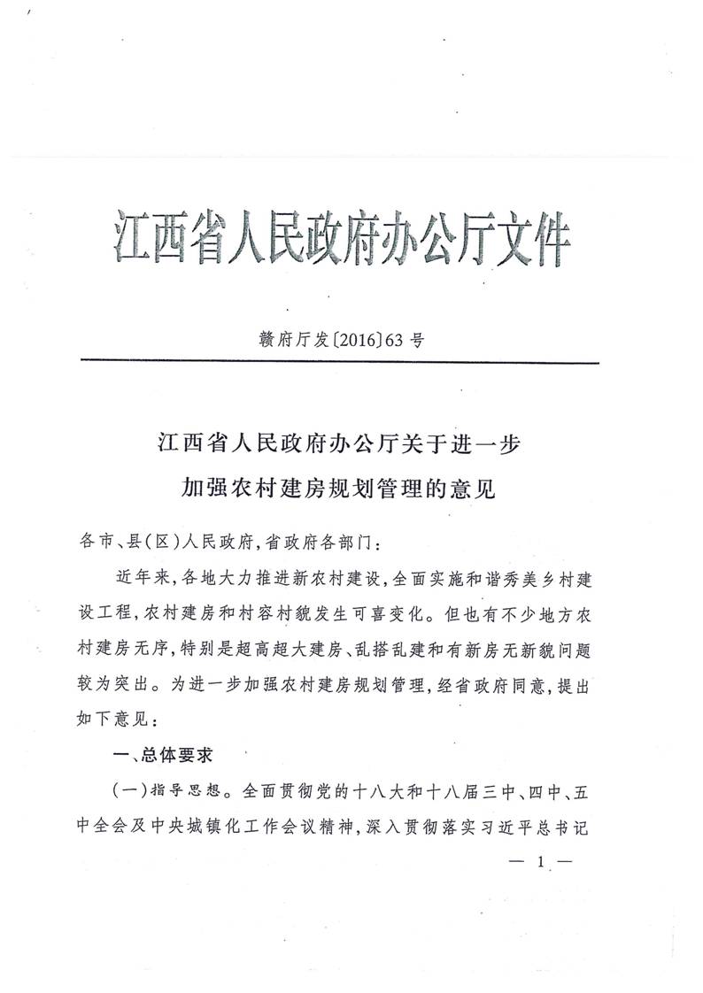 江西省人民政府办公厅关于进一步加强农村建房规划管理的意见